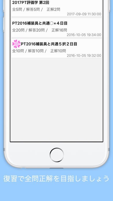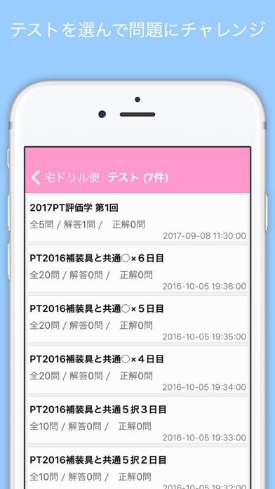 有限会社ラウンドフラットが提供するスマホラーニングシステム「宅ドリル便 システム」から定期的に配信される、理学療法士国家試験過去問題の小テストを行うためのアプリです。問題を解き終えた小テストは、後から復習もできます。
