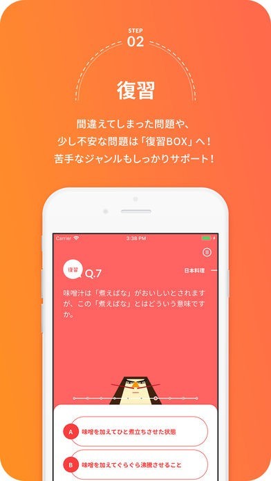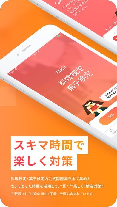 料理検定・菓子検定の問題集をアプリに収録。書籍にはない解説写真やちょっと変わったキャラクターで楽しく、わかりやすく料理の知識が身につきます。