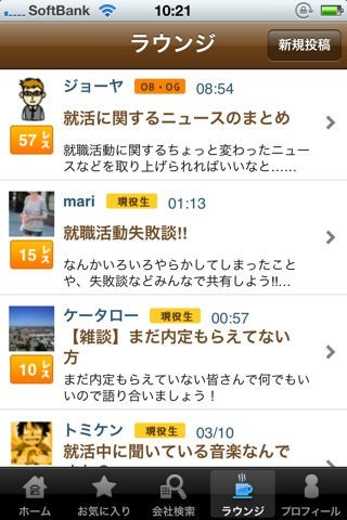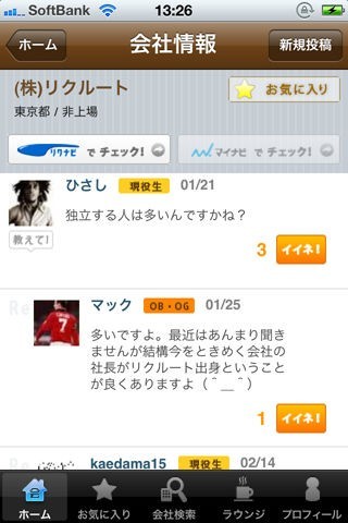 すでにOG・OBの先輩もたくさん会員登録しているから、質問を書き込んだらお気に入りの企業に所属するOG・OBの先輩が返信してくれるかも?!