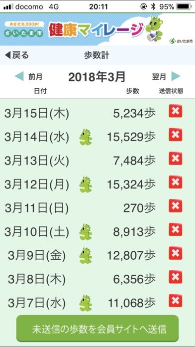 アプリを起動して持ち歩くことで、毎日の歩数が記録できます。
