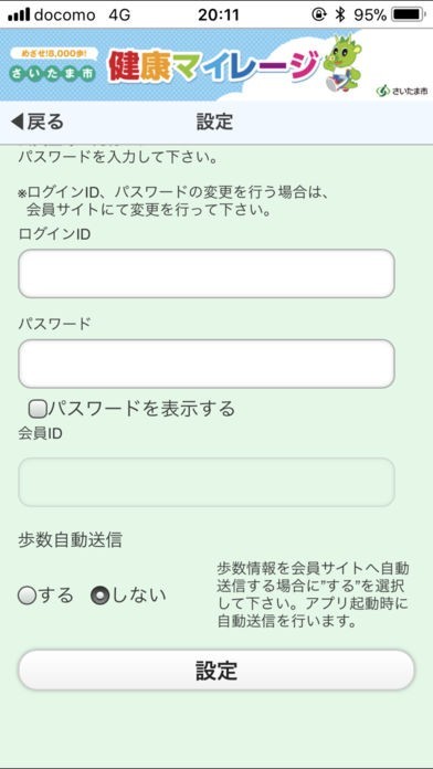 IDとパスワードの設定を行うことで、さいたま市健康マイレージ会員サイトへ歩数情報を連携可能となります。