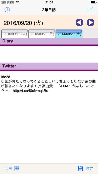 今年・1年前・2年前の日記がタブ切り替えですぐに表示できるこのアプリは、毎年の振り返りをすることで懐かしんだり、今年の企画を立てたりする際に参考になるアプリです。