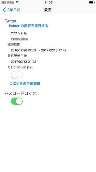 毎日日記を書くのが面倒……という方にも、このアプリはおすすめです。Twitterとの連携をすることによって、自動的にタイムラインからツイートを取得してくれてツイートをしているだけで日記になります。