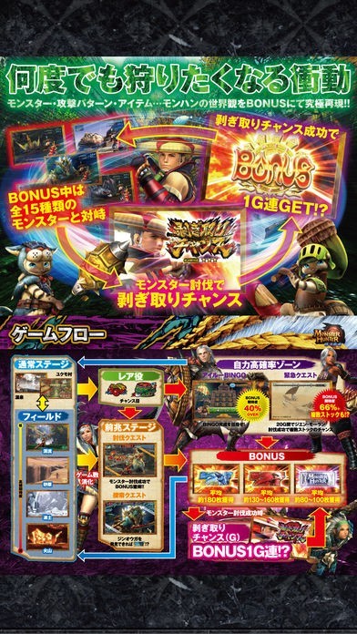 モンハンの世界観とパチスロのゲーム性が融合した人気パチスロがアプリで楽しめる