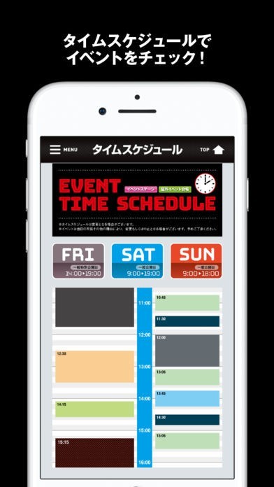 会場案内をはじめ、マップやタイムスケジュールなどすぐに見たい情報をお手持ちのiPhone、iPadでスマートにチェックすることができます。事前に公式ガイドをダウンロードしておけば電波が混み合う会場でもサッと見れて便利! かさばらないので会場の移動が今まで以上にラクになります。