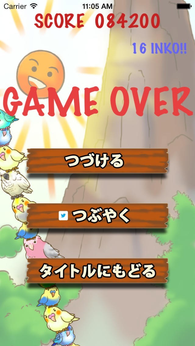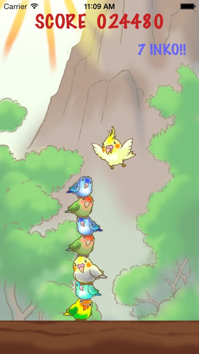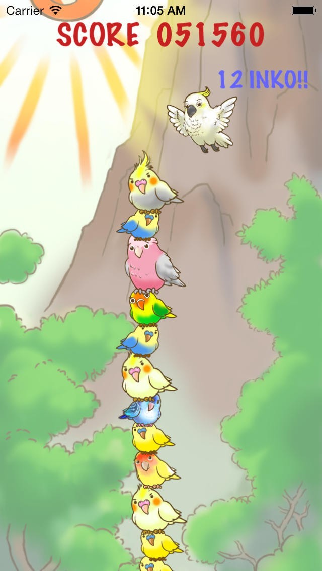 落下してくる様々な種類のインコたちをタップ操作で積み上げていく!