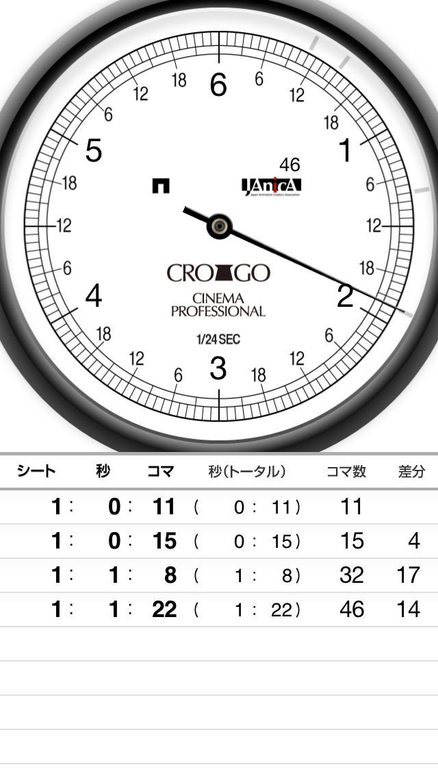 1秒24コマ、日本の標準的なタイムシートに合わせて1周で6秒を計測することができます。