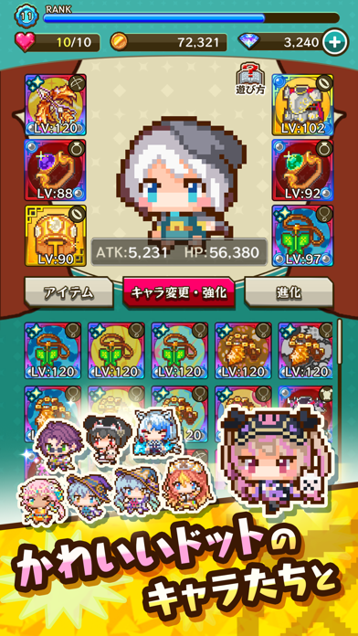 お気に入りのキャラクターと装備を組み合わせて、自分だけの最強編成をつくろう。