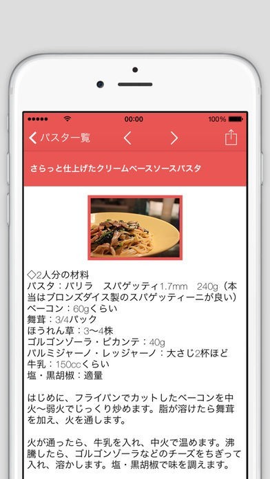 App Storeより引用パスタのレシピや食材の紹介アプリです。