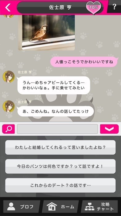 年下の男子高校生、大学の先輩、オネェや女装男子など個性豊かな男子とやりとりできるメッセージアプリ風恋愛ゲームで胸キュンしながら楽しんでいます。