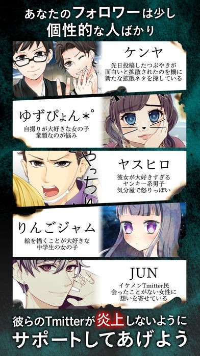 自撮りやネタ画像のやりとりでSNSを楽しんでいる、ネットリテラシーが低めのキャラクター達をリプライで誘導し、炎上を防いだり、逆に促したりするドキドキのシナリオを楽しめます。