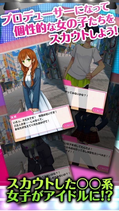 個性的な美少女をスカウトしてメジャーなアイドルにプロデュースする育成ゲームです。多様なレッスンを通じて、よくいる普通のアイドルではなく個性あふれる◯◯系アイドルに育成することができます。