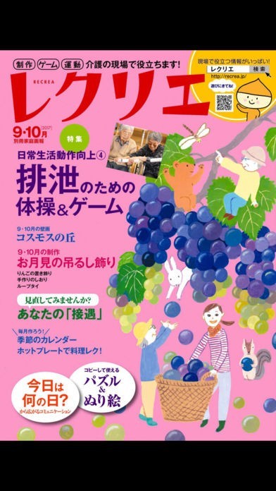 アプリを搭載しておけばいつでもどこでもちょっとした隙間時間にレクリエを読むことができます。本屋さんが遠かったり買い忘れたりしても安心です。もちろん気に入れば購入することも可能です。