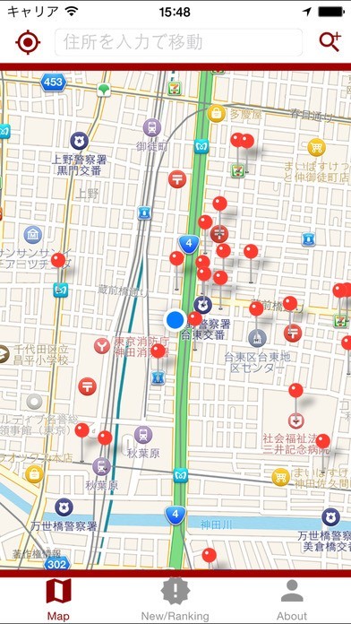 今まで行ったことがない場所までロードバイクやクロスバイクでサイクリングに行きたいけれど、トイレや駐輪場などがあるかどうかが心配だという人にぴったりなアプリが「サイクリングマップ」です。マップ上に各ユーザーがサイクリングに役立つ情報を位置情報や口コミ付きで投稿することが出来るアプリとなっているので、初めて訪れる場所でもどこに何があるのかを確認してからサイクリングを楽しむことが出来るようになります。ユーザーが投稿した情報はマップ上に赤いピンで表示されるので、気になるスポットがある場合にはピンをタップすれば詳細情報を確認することが出来ます。