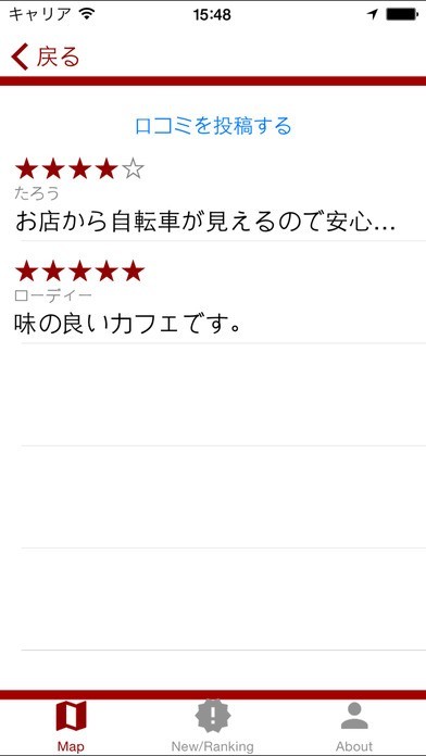 サイクリングに役立つ情報を位置情報や口コミ付きで投稿することが出来る!