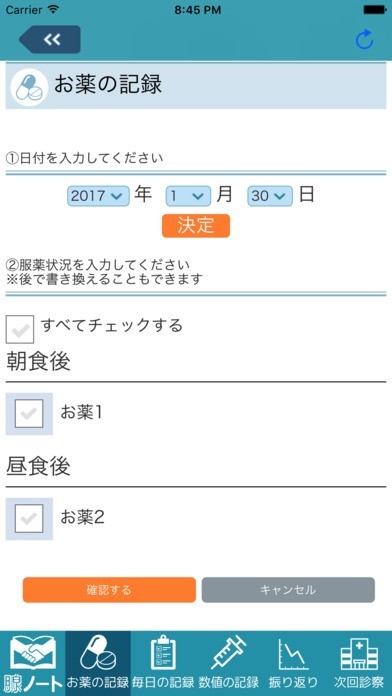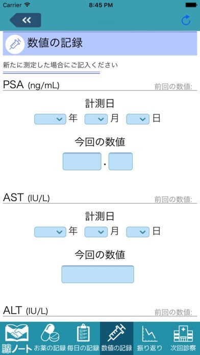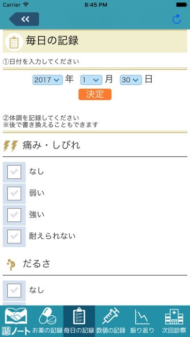 前立腺がん患者が毎日の症状や体調などを記録しておくことができるアプリ