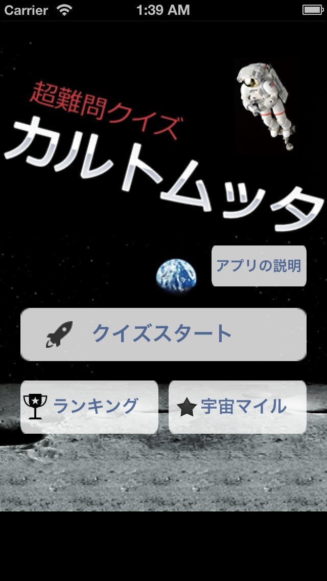 「カルトムッタ」はあの人気マンガ「宇宙兄弟」を題材にした無料クイズゲームです。ランダムで10問出題され4択で答えるんですが、ハッキリ言って半端じゃない難しさです。ワンシーンだけ登場した人物や、コマの隅に描かれたモノに関してだったり、原作を”一通り読んだ”程度ではムリなレベルになっています。それだけに原作ファンがクリアしたときの達成感はハンパじゃないでしょう。また正解して貰える”宇宙マイル”がランキング表示されるのでユーザー間で競えます。