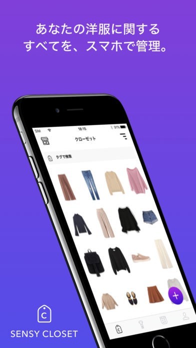 SENSY CLOSETは、一着登録したら、平均21着(=シーズンの着まわし全アイテムに匹敵)はついつい登録してしまう便利アプリ。