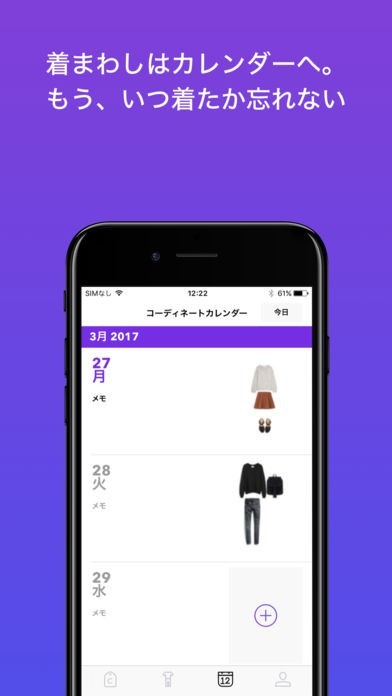 - アプリ内カレンダーに、作成したコーディネートを登録しておくことができます。