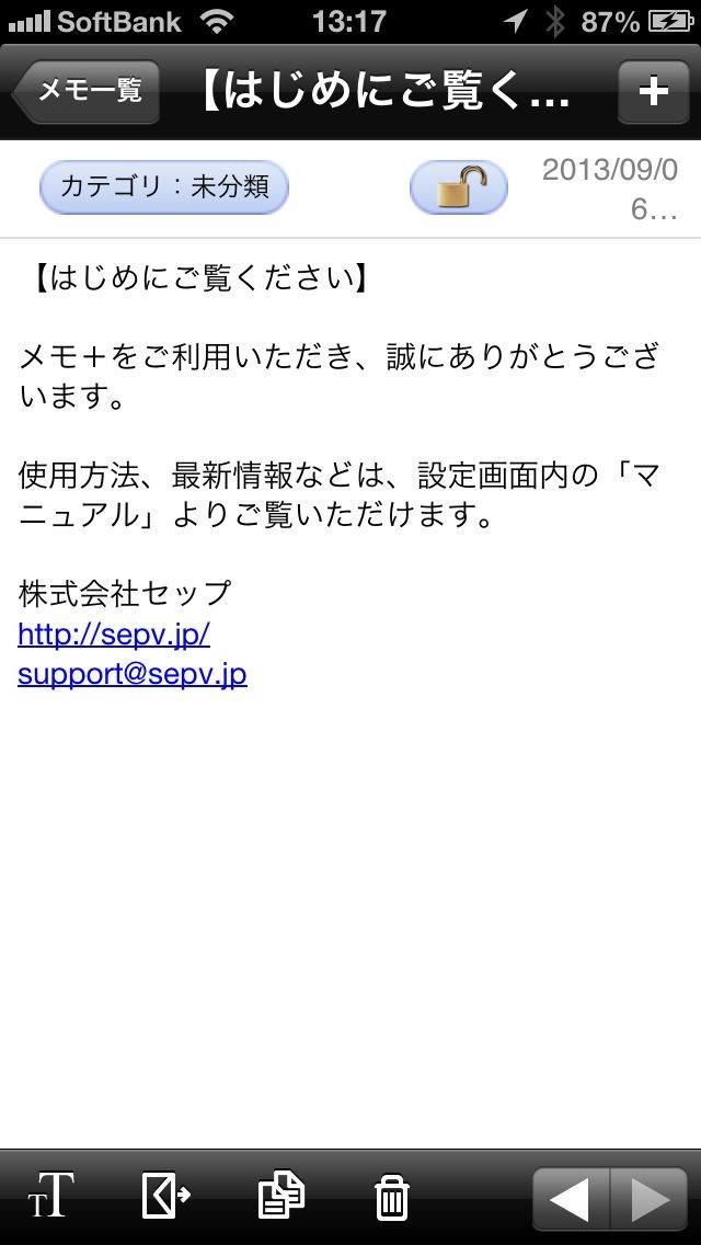 メモ+(Memo Plus)は、「すぐ書ける」、「すぐ見られる(探せる)」といったメモの基本を追求したメモアプリケーションです。