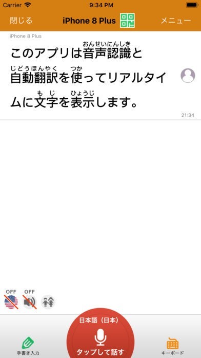 全ての話し言葉ではなく画面内のスイッチをタップしてから反映が始まるので、提示したい所を表示できます。文章化する部分をスマートに伝えられ、振り仮名が自動でつけられる等正しい書き言葉になります。