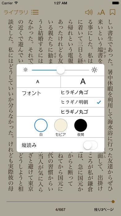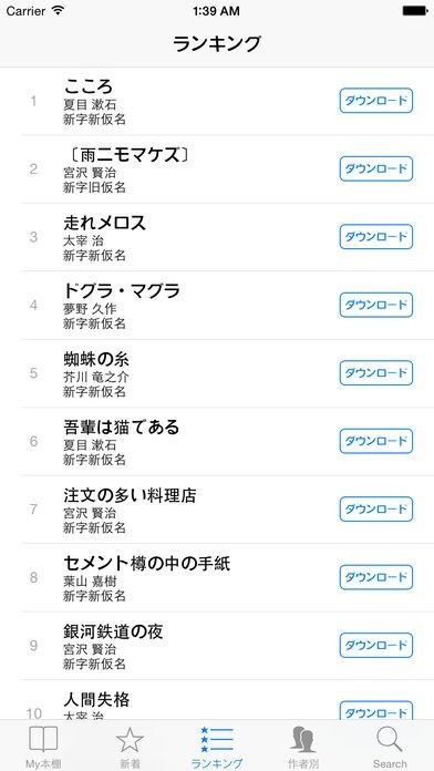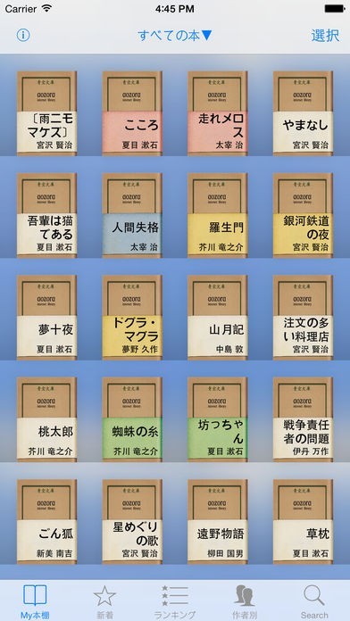 App Storeより引用青空文庫作品をダウンロードし、iPhoneやiPadで読むことができます。シンプルな操作で使いやすいように設計しました。