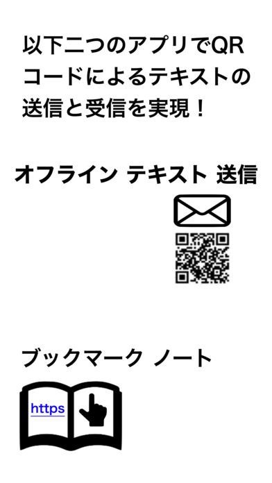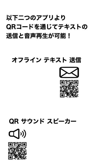 テキストをQRコードに変換し、それをQRコードを扱える他のデバイスで「オフラインテキスト送信」を使い読み込むことでテキストに再変換できます。インターネットや電話回線を使わずにテキストデータを送信したい場合に便利です。誰にもデータを読み取られる心配がありません。