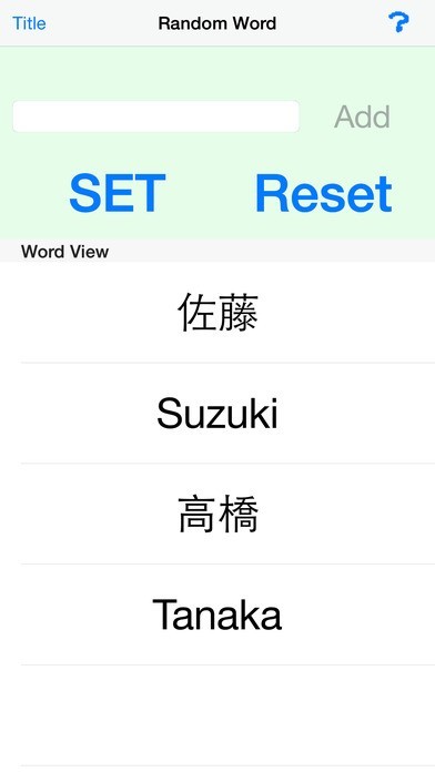 名前やモノなどの名前を入力し、入力された文字列をランダムに生成する。