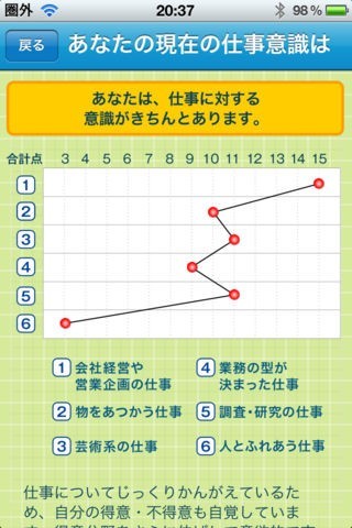 App Storeより引用「仕事ワーク」は仕事に就く上での基礎となる「なぜ働くのか」「生きがいとは」「自分にはどういう特性があるのか」「仕事する上での基礎力とは」という4つの視点から“仕事をする意味”を考えさせるワークブックです。