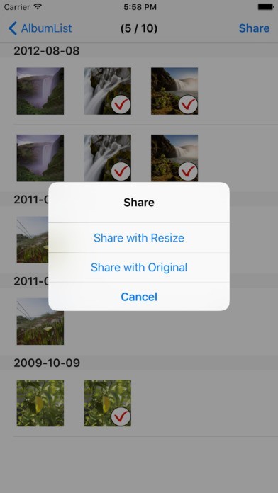 共有機能も充実。大きすぎる写真をリサイズしてからすぐにSNSにシェアできる!
