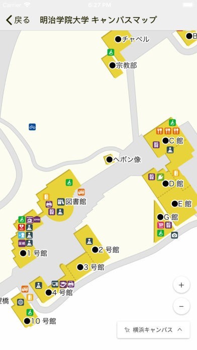 キャンパスのマップを見ることもできます。それぞれの校舎の場所を調べることができるので、入学したばかりの新入生でも迷わずに授業が行われる教室に行くことができます。
