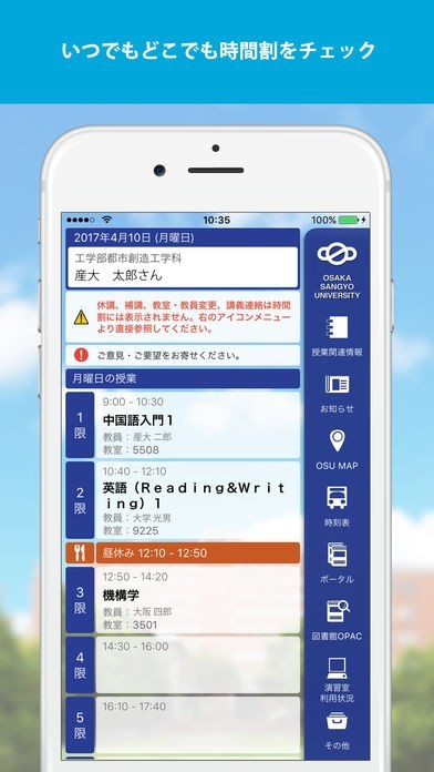 App Storeより引用産大モバイルは大阪産業大学の学生をサポートするためのポータルアプリです。