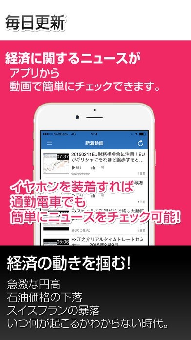 「FX動画まとめ!for iPhone」のアプリとは、FXトレーダーのために役立つ情報が多数紹介されているアプリとなっています。最新の情報からあまり知られて情報まで掲載されているので、すでにFXの取引をしている人でも有益な情報を得ることができます。他のインターネットサイトやアプリよりも情報量が多いので、アプリを併用しても利用した方が良いでしょう。連続再生機能もあるので、通勤中動画をながしっぱなしにしておくことで勉強することができます。