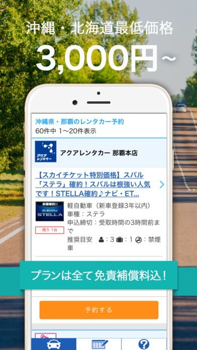 新幹線や飛行機を使うほどでもない、ちょっとしたお出かけや出張のときに利用するレンタカー、貸し出してくれる会社もたくさんあってどれを利用するか迷うときがあります。このアプリ「skyticketレンタカー」は全国どこでもレンタカーの料金を一括で比較してくれて、いつでも予約ができる無料のアプリです。登録も必要ないので気軽にダウンロードして使うことができます。もちろん用途に合わせた細かい車検索もでき、リアルタイムで空車を検索してくれるので手違いで借りられなくなることもありません。格安1日3,000円~、このアプリでお得に車を借りましょう!