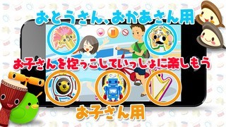 App Storeより引用うたに合わせておやこで楽器遊び(太鼓やカスタネット以外にも70種以上の珍しい楽器)ができる知育アプリです。