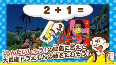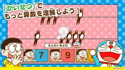 コロコロコミックで連載されている、藤子・F・不二雄さんが描いた、国民的マンガの「ドラえもん」に登場する、野比のび太やジャイアンと一緒に算数を学習することができます。