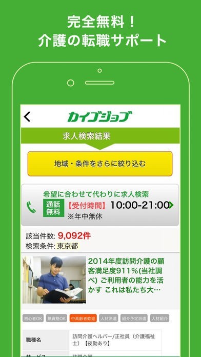 「介護の求人情報サイト カイゴジョブ公式アプリ」スペック・仕様