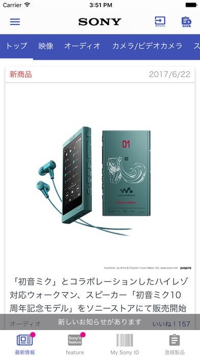 ソニー製品の情報をチェックできる公式ライフスタイルアプリ