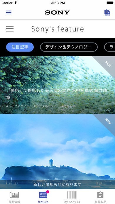 ソニー製品やソニーストアなどソニーに関連する最新情報を閲覧することができます。コンテンツが更新された時には通知が来るので、いち早く情報をチェックできてキャンペーンを逃すこともありません。