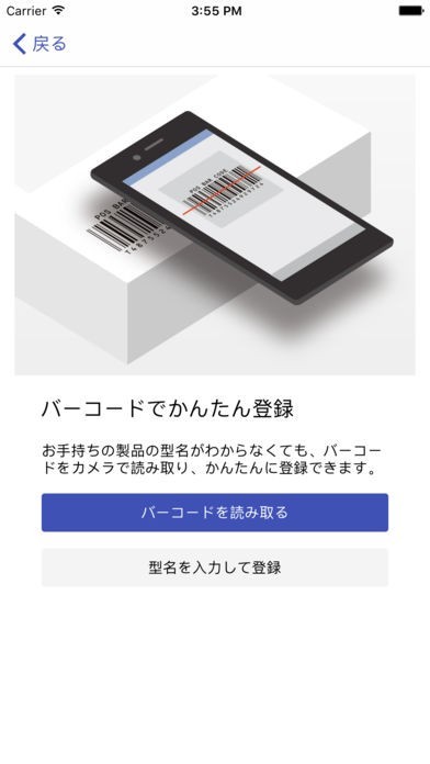 バーコードを読み取って製品登録できる
