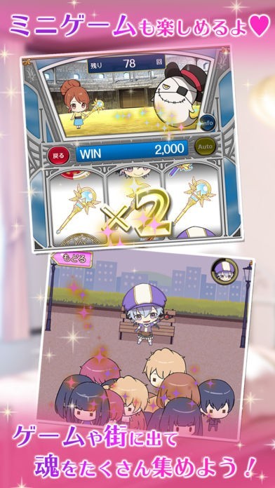 ストーリーを読むだけではなく、会話をすることで好感度をあげ、集めた魂を捧げていく