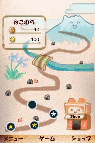 2本の指をスライドさせてステージをクリアしていこう!町の育成などやり込み要素も満載!