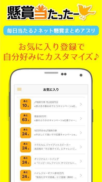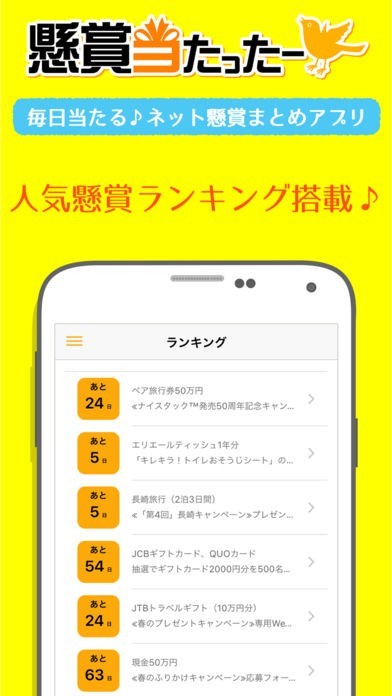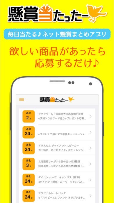 懸賞アプリ「懸賞当たったー」は無料懸賞情報がいっぱいのアプリです。