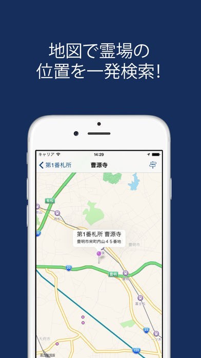このアプリを使えば、霊場の情報や次の霊場への道順を調べることができます。