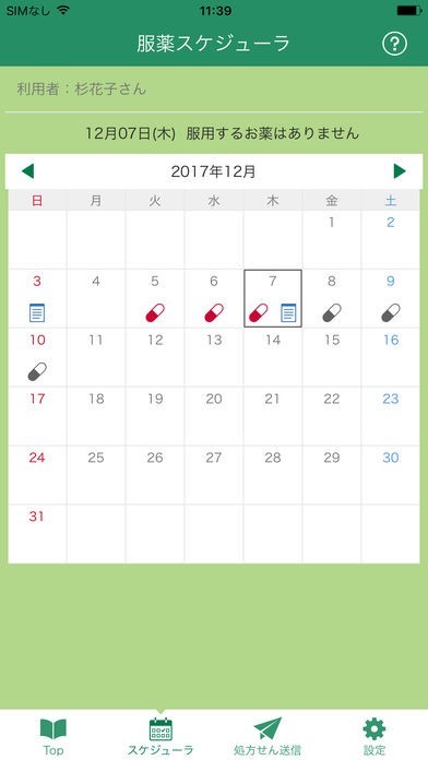 処方箋によって服用の時間や個数が違い、忘れたり間違ったりしがちです。スギ薬局おくすり手帳があればスケジューラーでカレンダー上に服薬マークを付けることができます。また服薬時間に合わせてアラームをセットする事ができるので、カレンダーとアラームの2重確認ができ飲み忘れ防止に効果的です。
