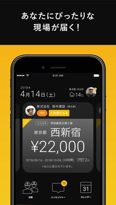 建設現場と職種を登録するだけで自分に合わせた仕事が簡単にピックアップ出来ます。また業務の発注にも対応しているので、人手を増やしたい時や腕の良い職人を探したい際に便利です。