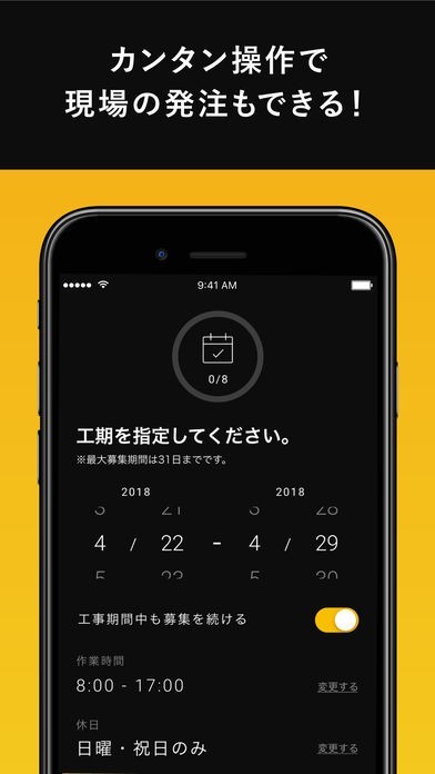 工期や作業時間を指定するだけで仕事の発注や受注が行える