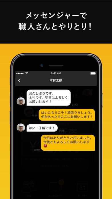 メッセンジャーが搭載されているため、仕事を依頼した業者と受注を行う職人との間でスムーズに連絡が行えるようになっています。作業日をカレンダーに表示出来るのも魅力ですね。