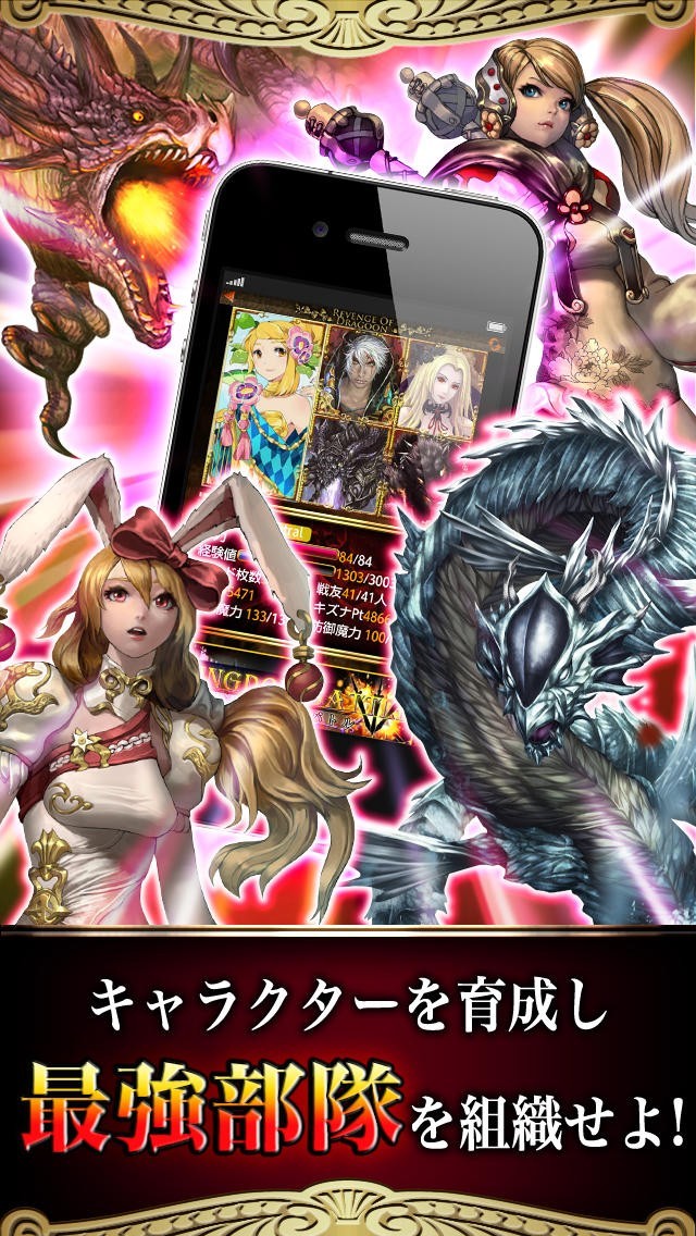 「リベンジ オブ ドラグーン ~逆襲の竜騎兵~」は、国内外の有名なクリエイターが参加したゲームで超美麗なキャラクターカードが300枚以上もあります。フェニックスやバハムート、ファイアードレイク、ミカエル、ルシファーといったファンタジーの世界で有名なキャラクターたちが美しいグラフィックで再現されています。奥の深いクエストにハマっていきます。テーマは「復讐」のクエストで奥行き感のある冒険の世界で個性的なキャラクターたちとの出会いや別れを繰り返し、友情をはぐくんでいきます。秘宝を奪い合って超レアなカードを手に入れよう。ライバルたちと「秘宝」を奪い合うバトルは白熱ものです。秘宝をコンプリートすれば「クエスト」や「召還ガチャ」でも入手できない超レアなカードを入手することができます。