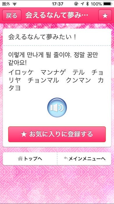 韓国語のフレーズの発音をカタカナ表記とネイティブによる音声で確認することができるので、韓国語初心者でも簡単に発音できるようになります。リスニングの勉強にも利用できます。
